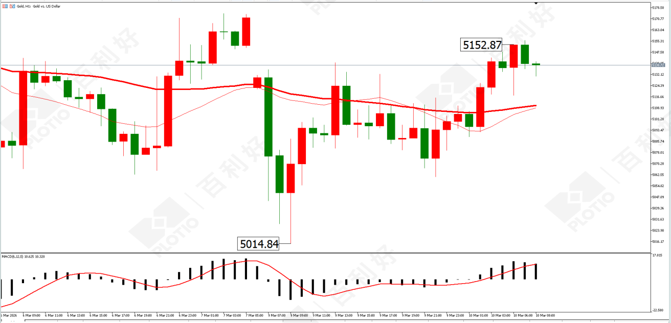 技術面:日線上,最近幾個交易日行情震盪調整為主。指標上看,行情處於62日均線上方運行,多頭佔優勢。日內關注下方5060美元一線支撐。